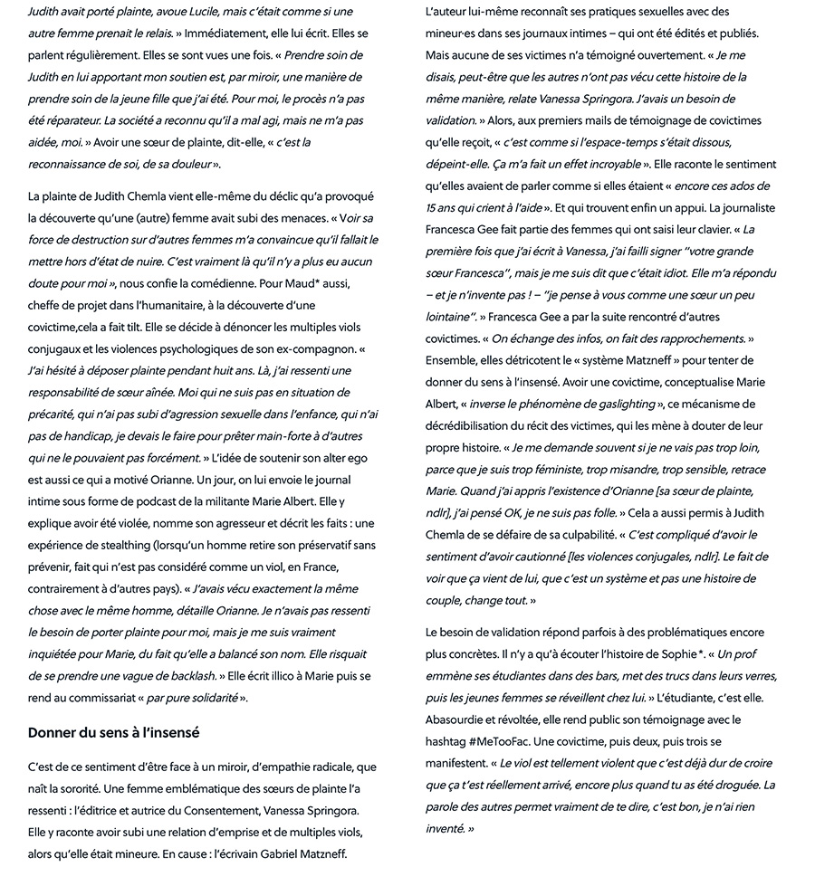 “L’existence d’une covictime crédibilise aussi la parole des plaignantes face à la justice.”