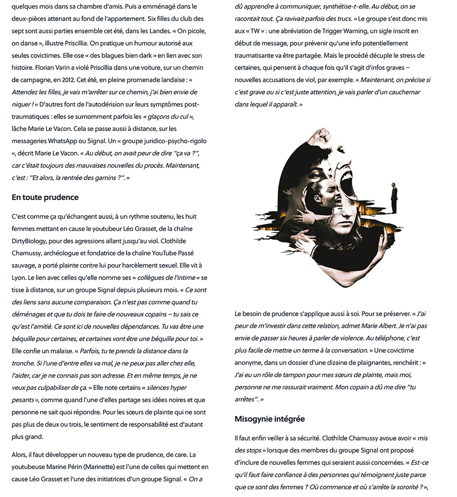 “Entre elles, un lien invisible, tressé à partir de l’horreur : leurs récits de viols, d’agressions sexuelles ou de harcèlement sexuel”